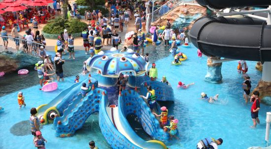 워터파크에서, 더위를 식히는 피서객