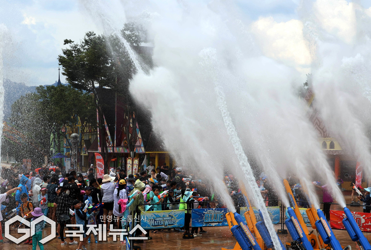 "워터파크에서 물대포 맞으며 더위 잊어요"